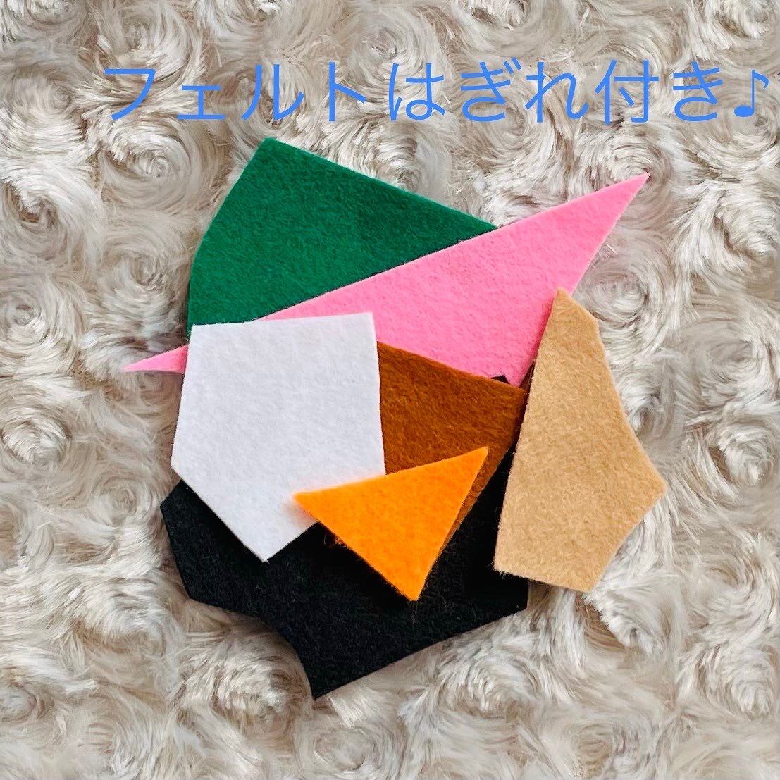お人形のの顔など1部の材料は自分で好みにカットできるようフェルトのはぎれを入れています