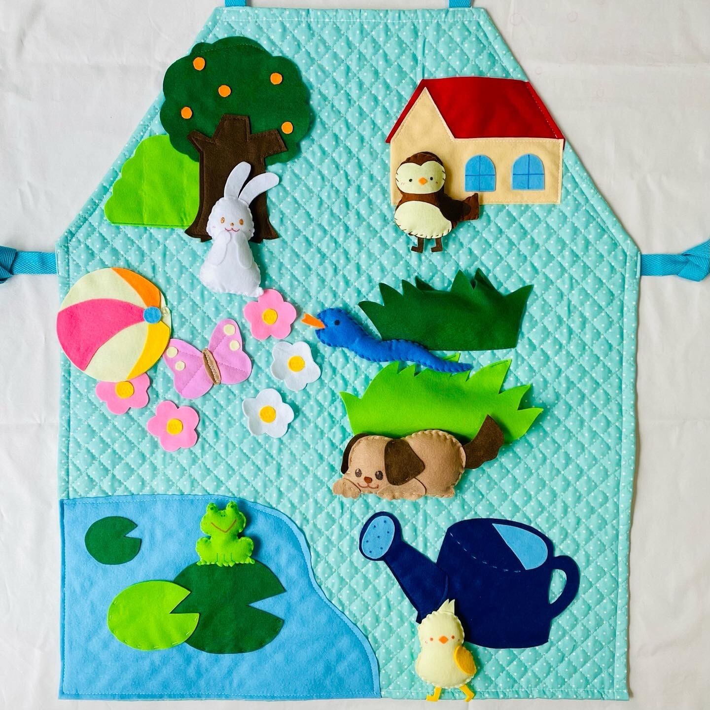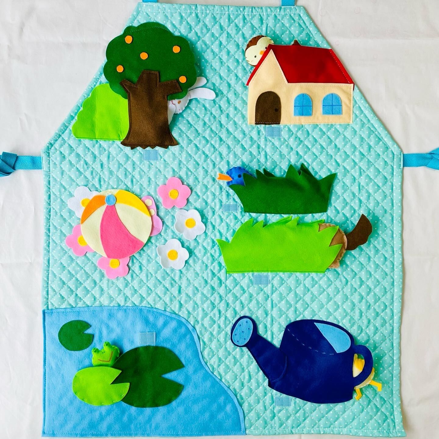 歌遊びに加えて、かくれんぼや誰かなゲームなど自由にアレンジして使えるエプロンになっています