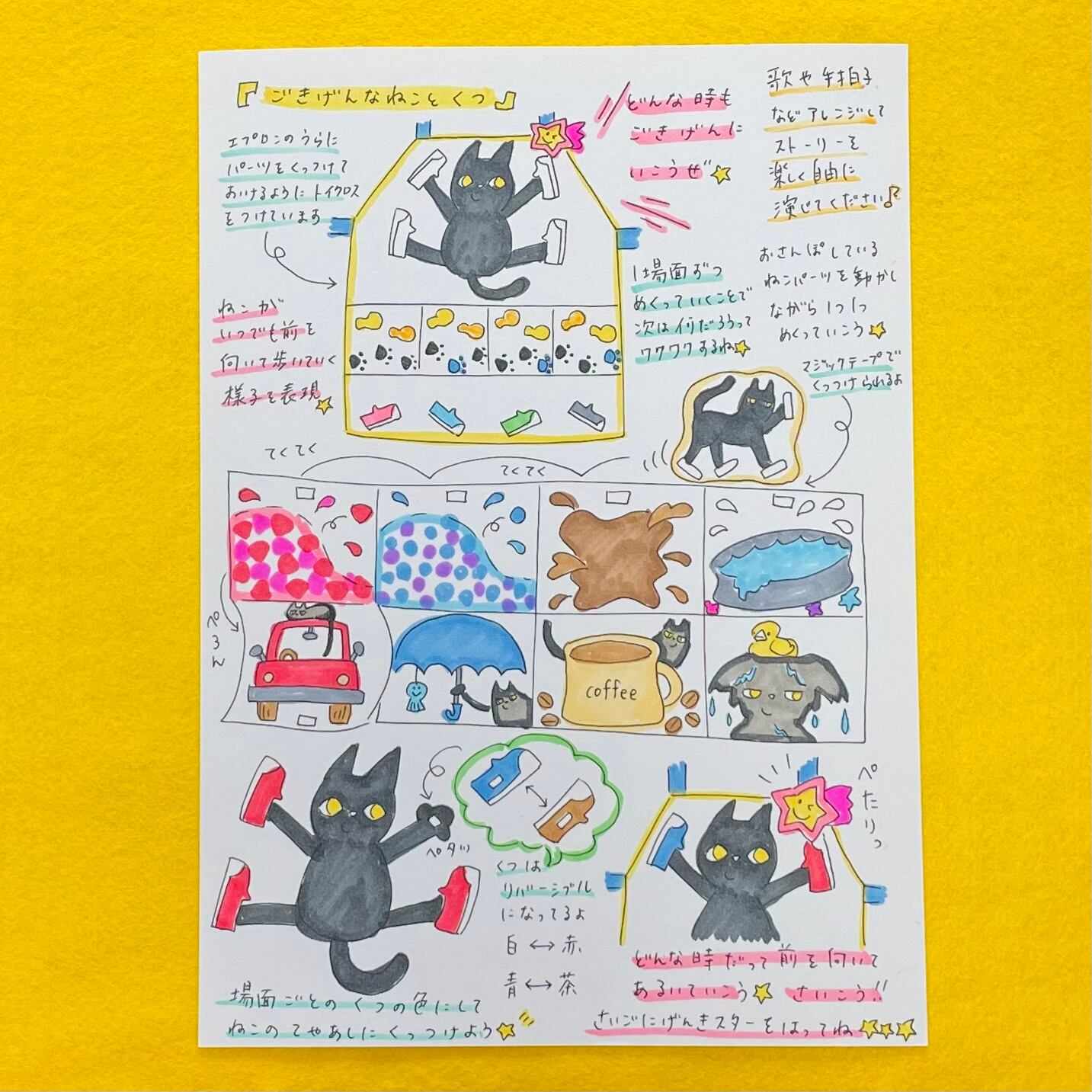 お話を読んで感じる「どんな時も前を向いて進もう!」という元気の出るメッセージが伝わるように、一緒に考えて作りました☆