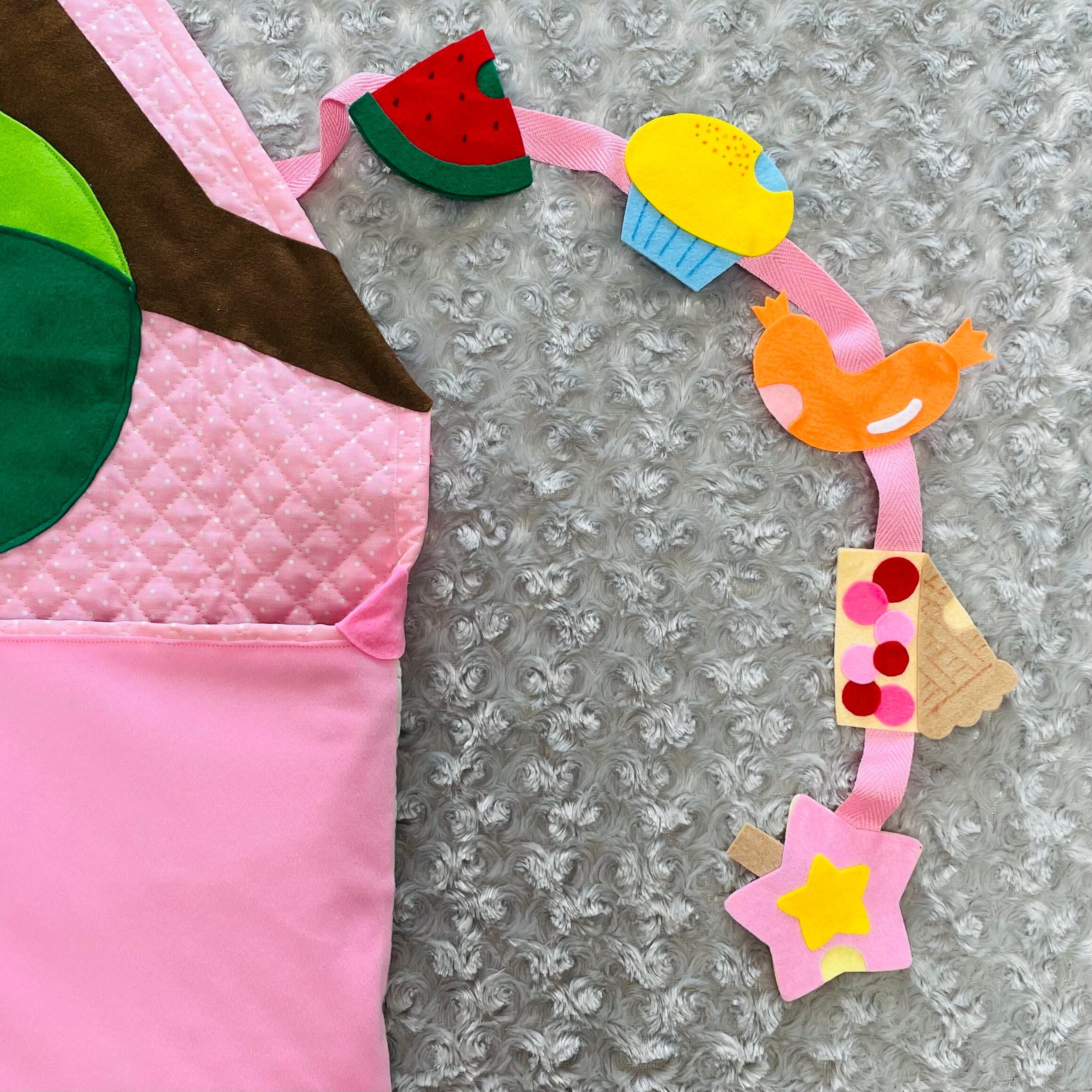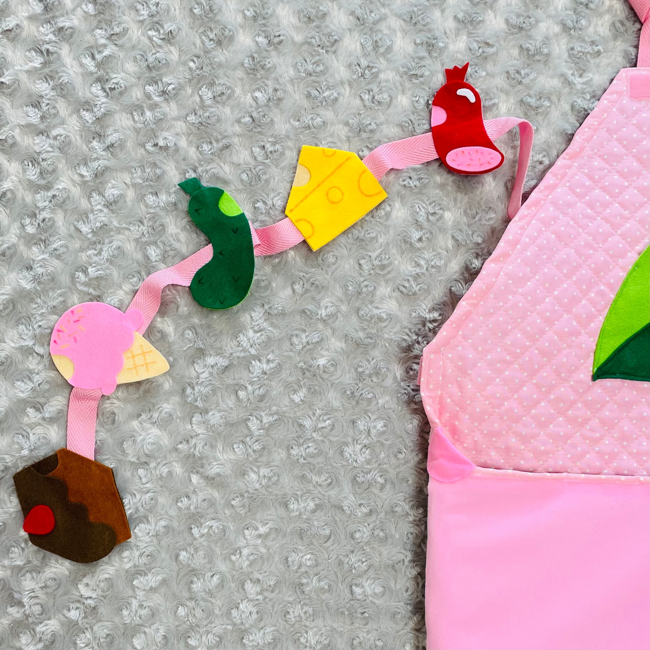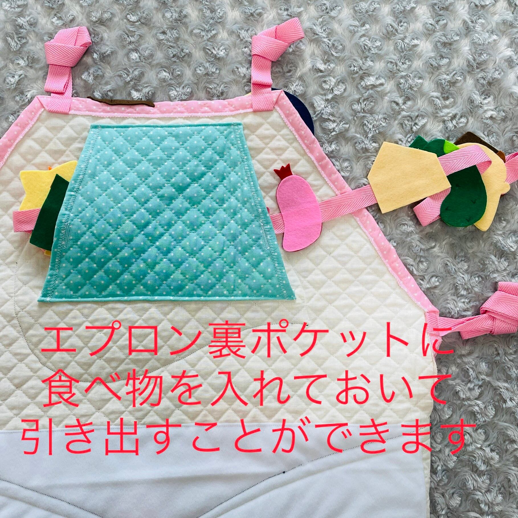 〜エプロン前面にトイクロスを使って食べ物がどこにでもペタッとつけることができます〜