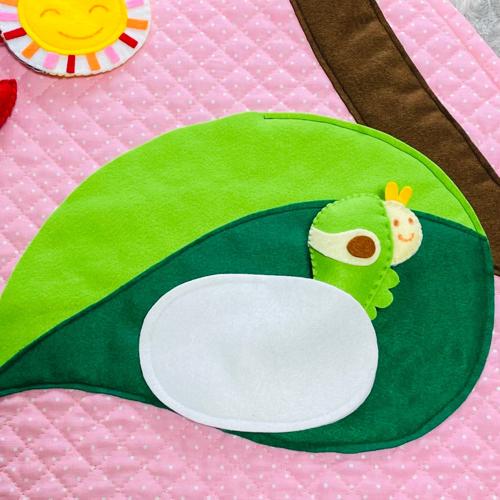 小さな卵から生まれたあおむしが大きなちょうちょに成長するまでの物語を演じることができます