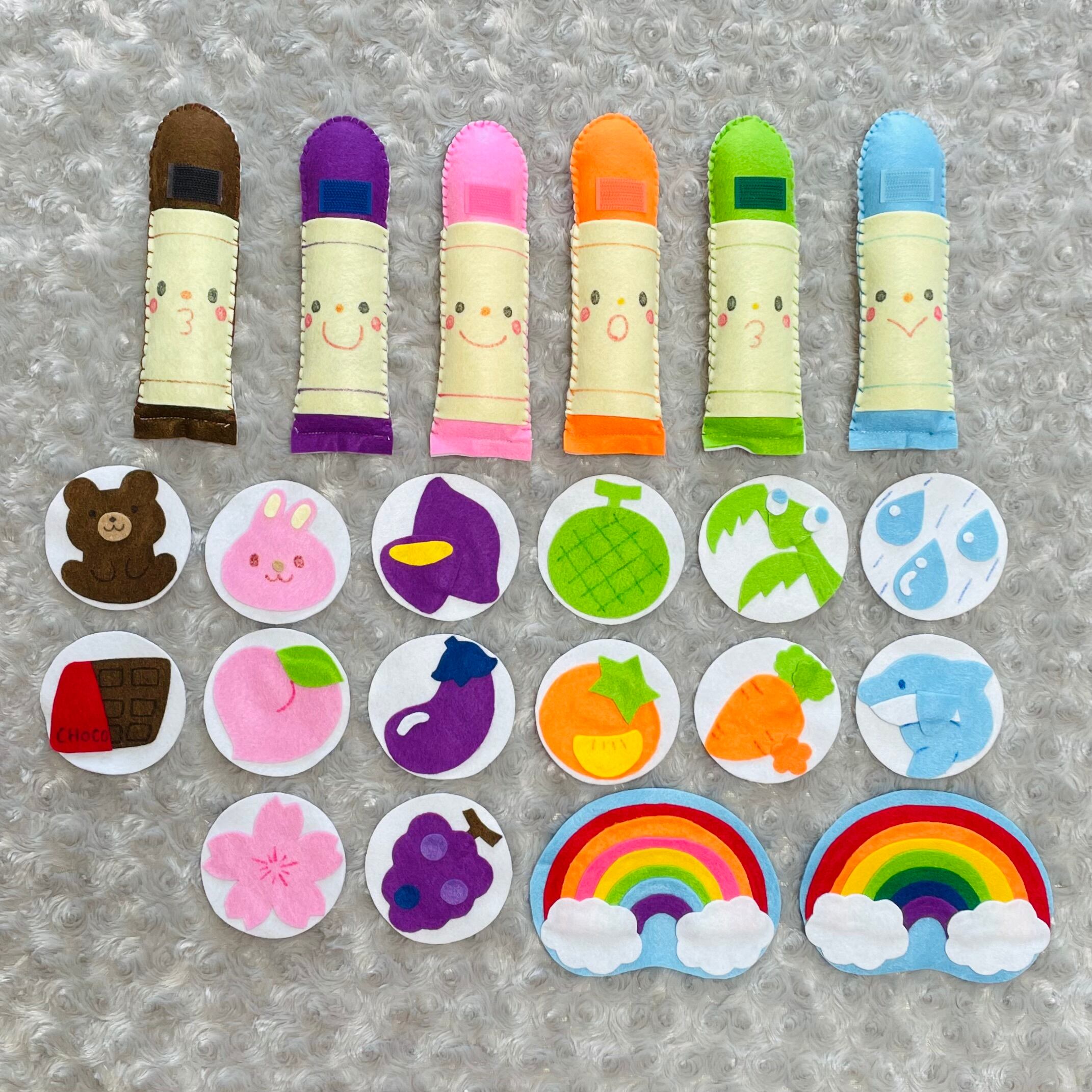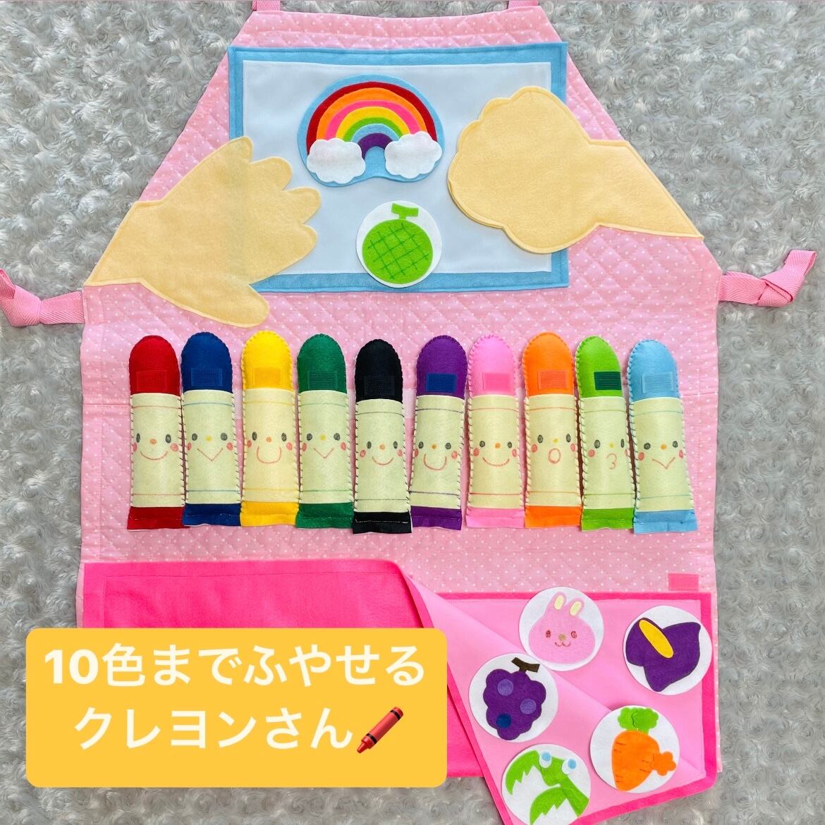ピンク/オレンジ/パープルなどのクレヨンを加えて10本にしました