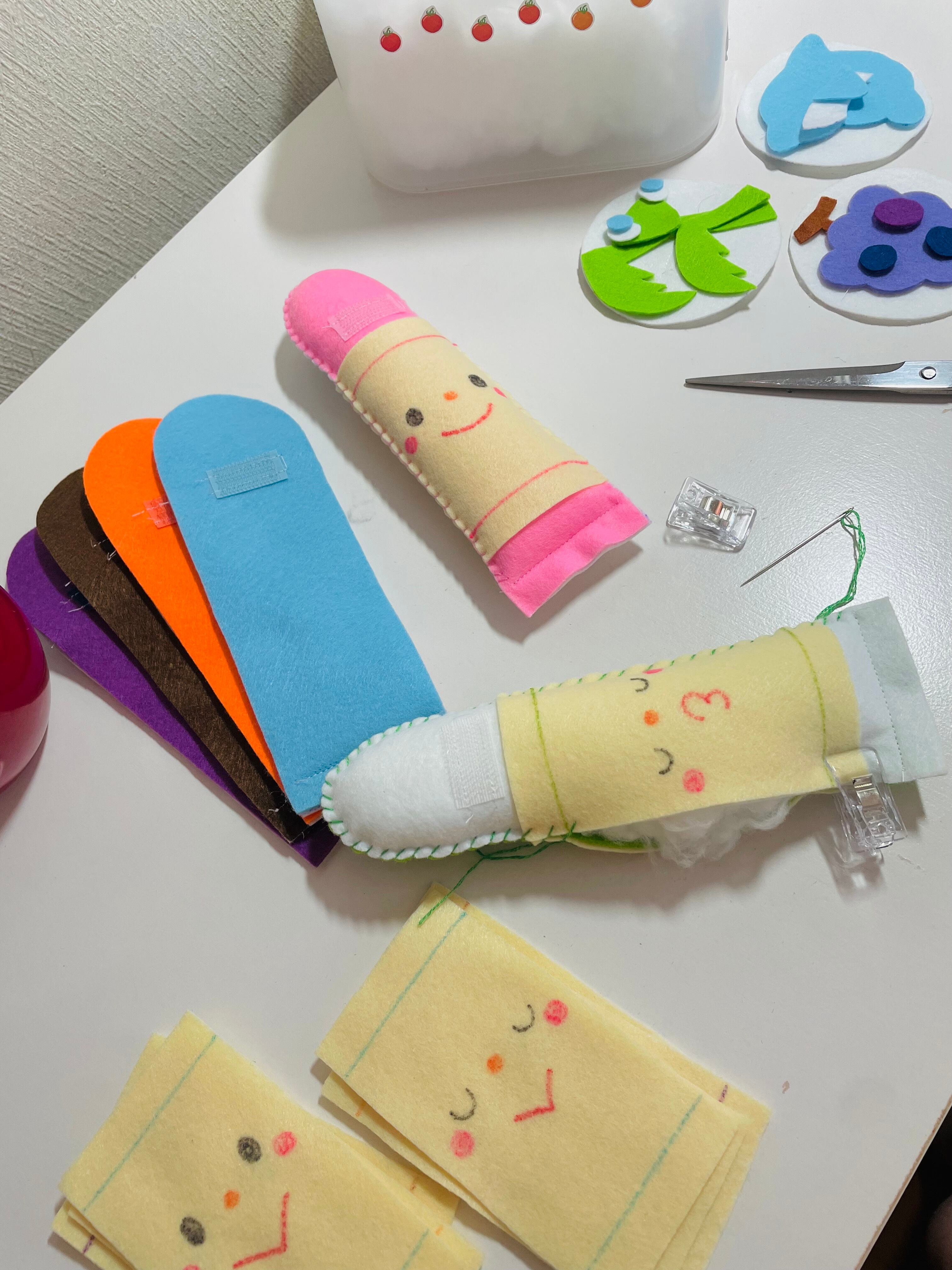 ✳︎ミシンと手縫い、グルーガンで仕上げています