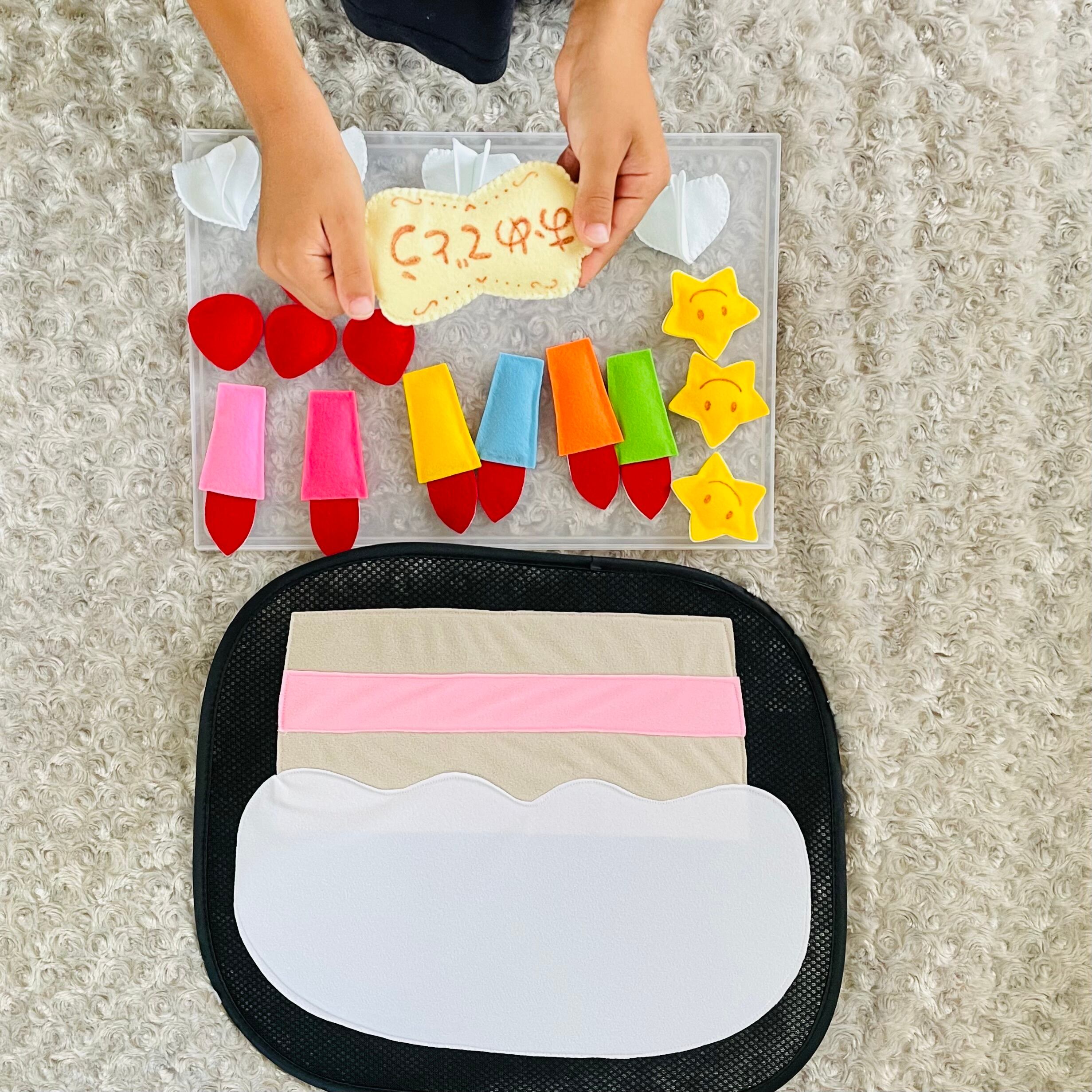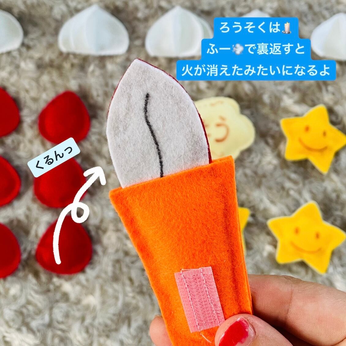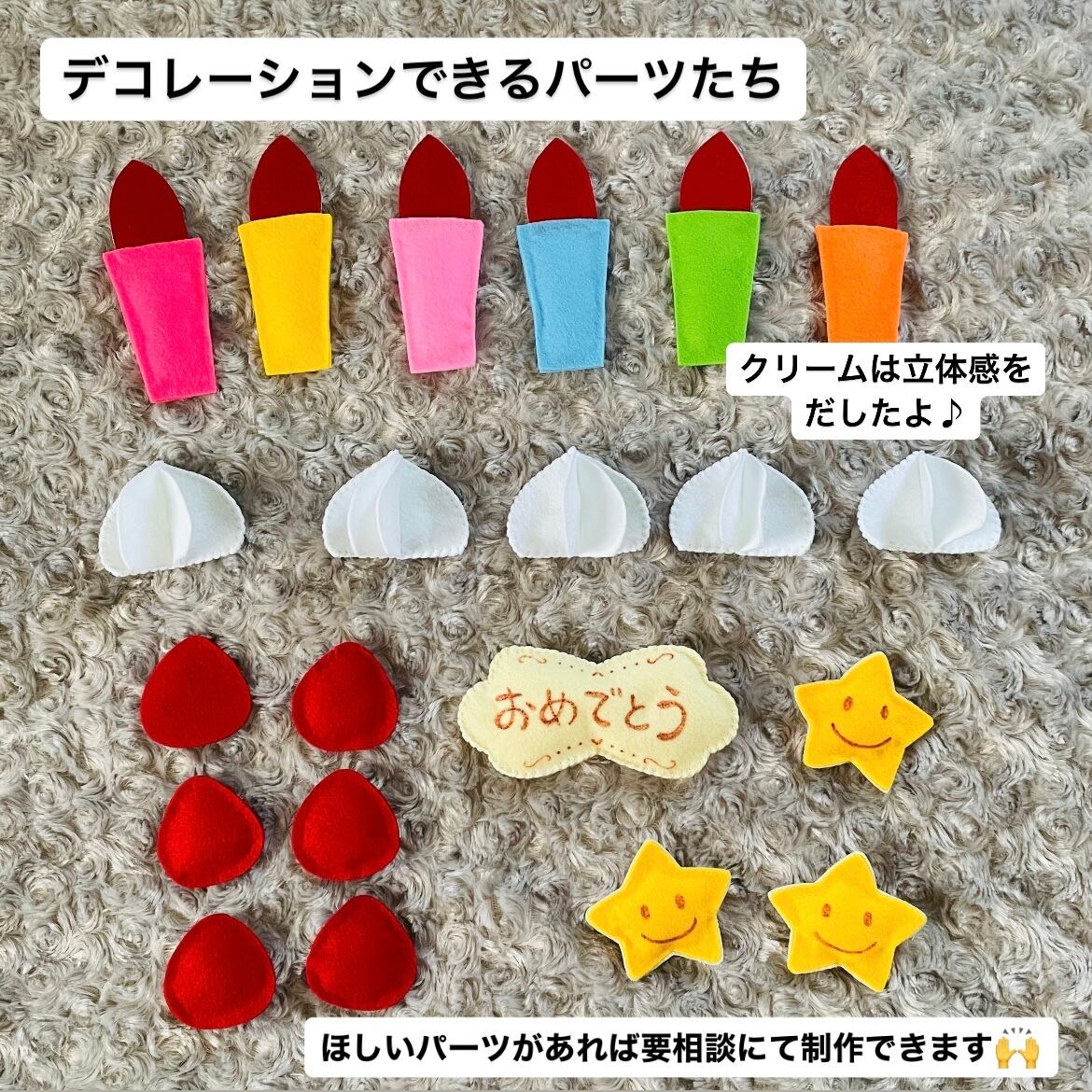 マジックテープ付きのパーツをデコレーションして遊ぶことができます♪